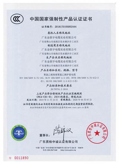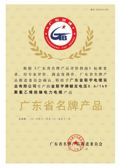廣東金聯宇電纜實業有限公司 18818805740 呂經理 公司于1999年創建于廣東珠三角的中心方位佛山南海,是一家專心于電線電纜研制、出產、出售、服務于一體的大型制作企業。經過多年技術革新和精細化處理,公司先后取得"國家高新技術企業、我國馳名商標、廣東省名牌產品、南海工程技術研制中心"等榮譽資質,經過了"ISO9001質量處理系統、ISO14001環境處理系統和OHSAS18001作業健康安全處理系統"等認證,多項產品被認定為廣東省高新技術產品,累計取得產品專利45項,公司接連多年中選"我國線纜作業最具競爭力百強企業和廣東省線纜作業最具競爭力20強企業"。